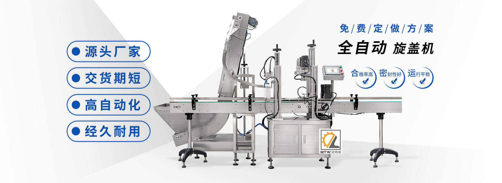 邁特威自動化設(shè)備(天津)有限公司坐落于素有京津明珠之稱的天津·武清區(qū),是國家高新技術(shù)企業(yè),專注生產(chǎn)、研發(fā)、銷售全自動灌裝機、旋蓋機、封口機、貼標(biāo)機等系列產(chǎn)品,立足京津冀、服務(wù)全國,遠銷海內(nèi)外,團隊由行業(yè)高技術(shù)人士組成,為國內(nèi)外食品、日化、糧油、醫(yī)藥等企業(yè)提供滿意的包裝解決方案。 查看詳情